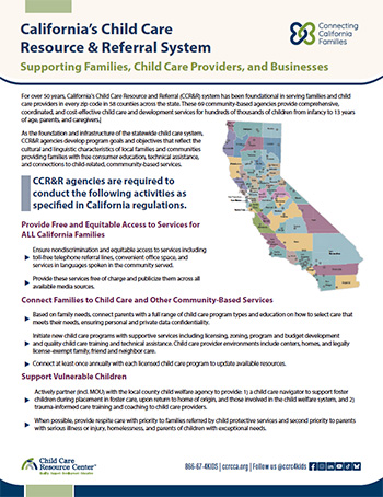 Справочник для родителей с рекомендациями для поставщиков содержит информацию о требованиях к получению услуг по уходу за детьми.